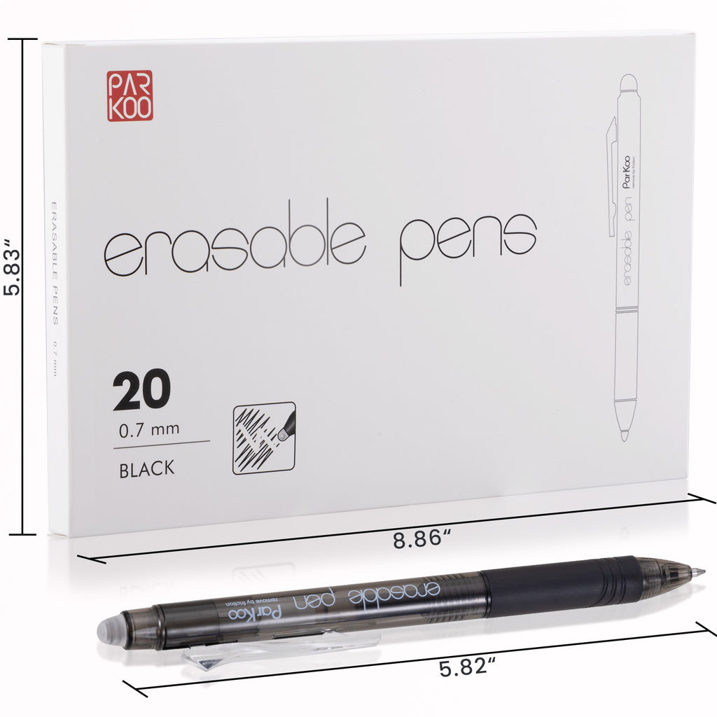 ParKoo 20 Pack Retractable Erasable Gel Pens Clicker, Fine Point 0.7 mm, Make Mistakes Disappear, Black Pens for Writing, Journaling and Crossword Puzzles