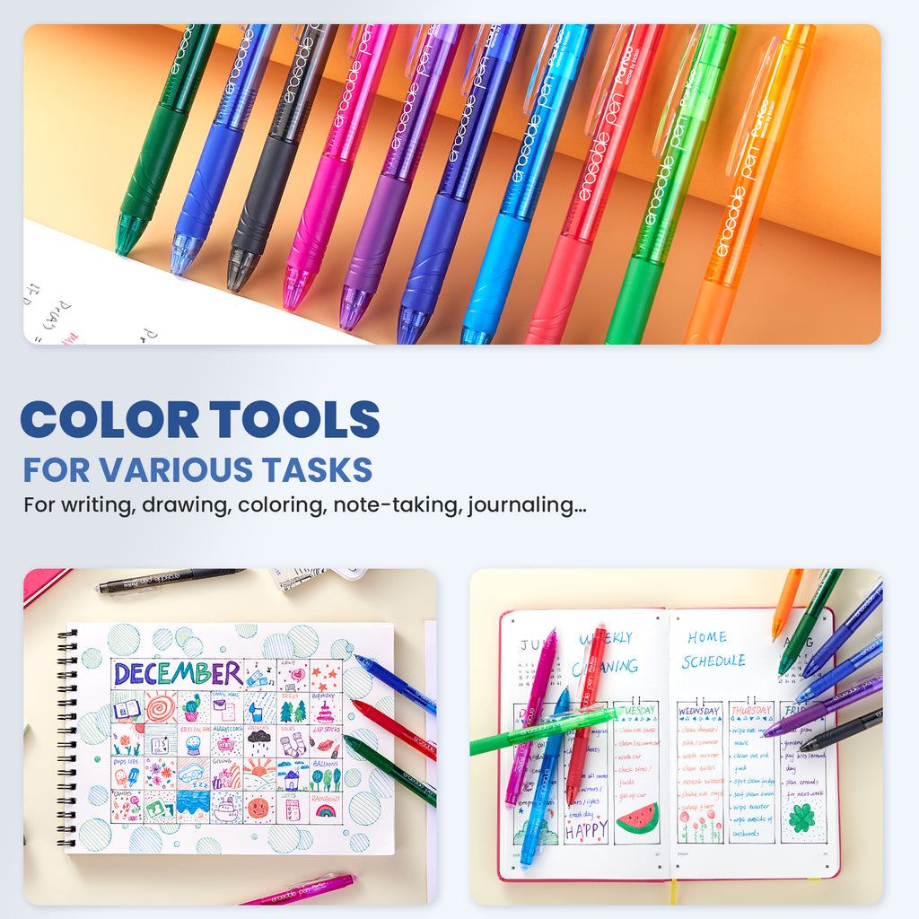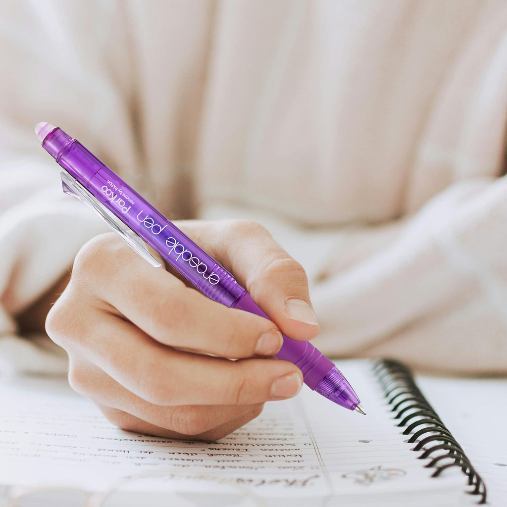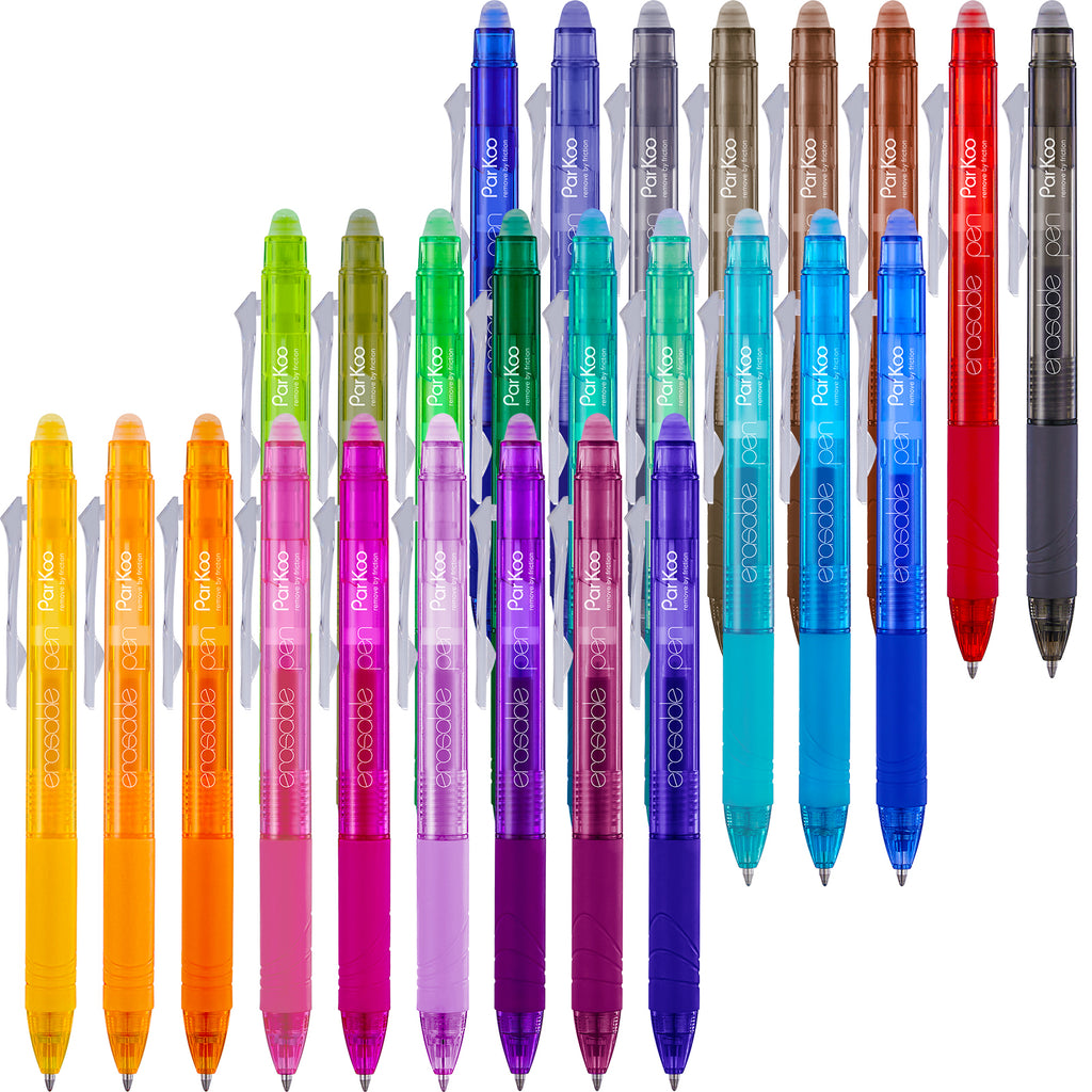 - 26 Vibrant Erasable Colors: This set of ParKoo erasable pens come in a fantastic range of colors. Multiple colors with comfortable grips are perfect for writing, coloring, drawing, doodling, note takiing, journaling, planning, color coding and so on. Add some flair for your notes, journals, or planners